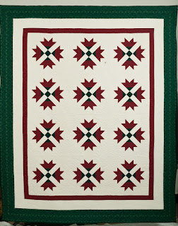 Yuletide Elegance, 1997, an original design for a simple Christmas quilt. One 12" block, a Carolina Lily, set on-point, with beautiful quilting designs on the large white alternate squares makes this an easy quilt and one that says "Christmas!" each December when I hang it in the living room. I have taught it several times. It was thrilling to have it featured on the cover of McCall's Quilting, December 1997.